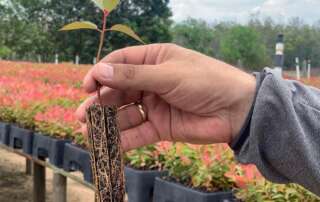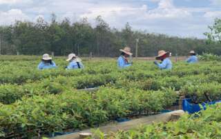 Cesta z města. Po cestě na farmu MY TREES El Morichal byla neuvěřitelná zácpa – potkali jsme celé tři kamiony a dvě motorky! Lesní školka vyprodukovala sazenice pro milion hektarů a stromy z roku 2019 mají od 6-8 metrů. Jsou to obři!