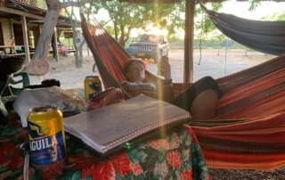 Chyceny v síti! Naštěstí v té houpací. Spousta kafe, plánování, dalšího kafe, jídla a kafe. A taky kafe. První asociální sen v Kolumbii! Asi už to bylo potřeba.