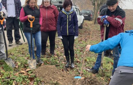 Tady se sešlo přes 20 nadšených Mytreesáků. A opět jsme ukázali, že se nebojíme vlka, nic! Ani sázení stromů vysokých 2-3 metry! Dobrovolníci zasadili krásných 40 kousků jeřábů moravských sladkoplodých. Další 2 stromy a 6 keřů pak vysázeli obyvatelé obce společně s dětmi z místní mateřské školky. Protože co se v mládí naučíš… však to znáš!