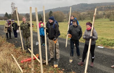 33 neovocných stromů k jednomu kůlu. Sešlo se 15 lidí a dva čtyřnozí asistenti.